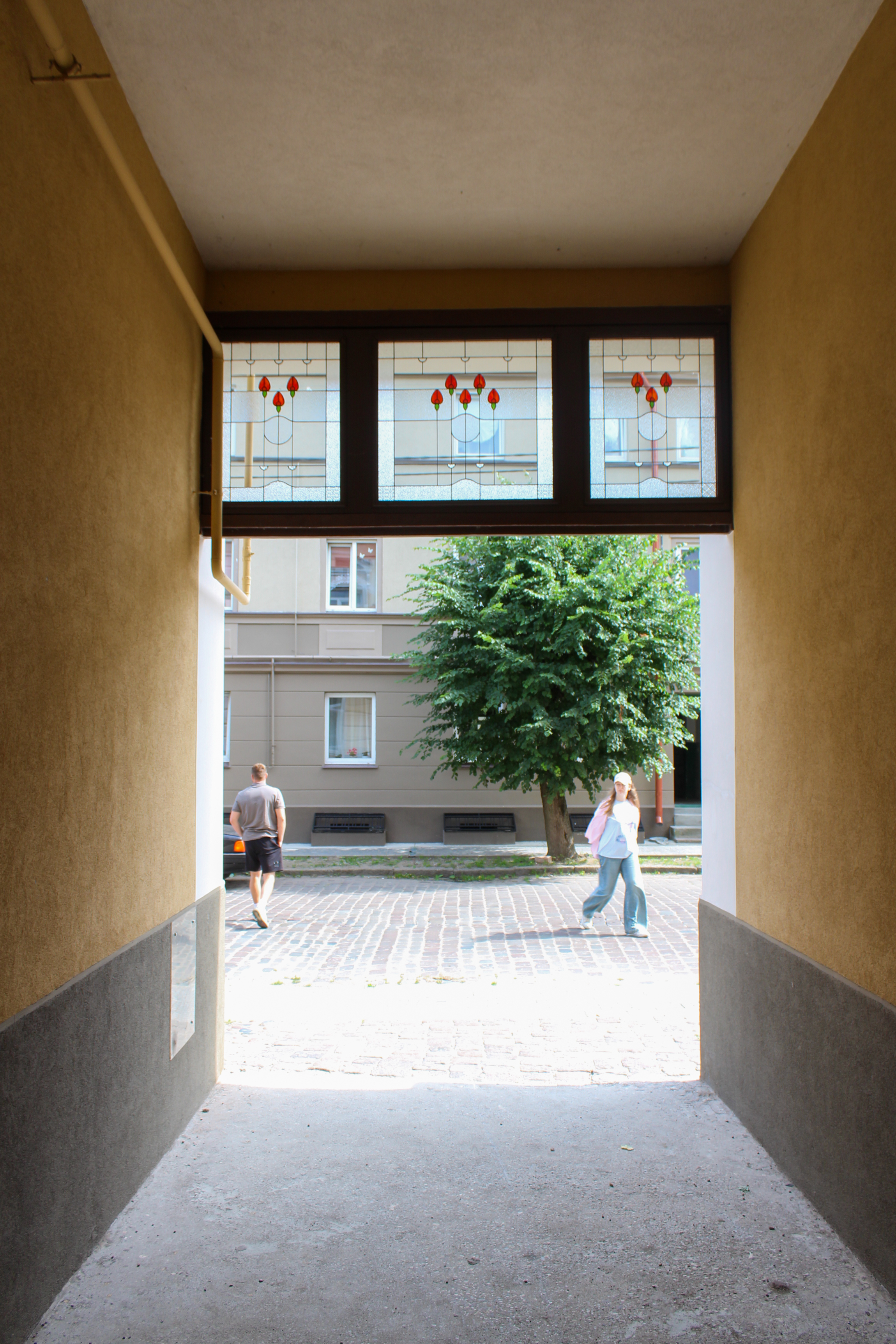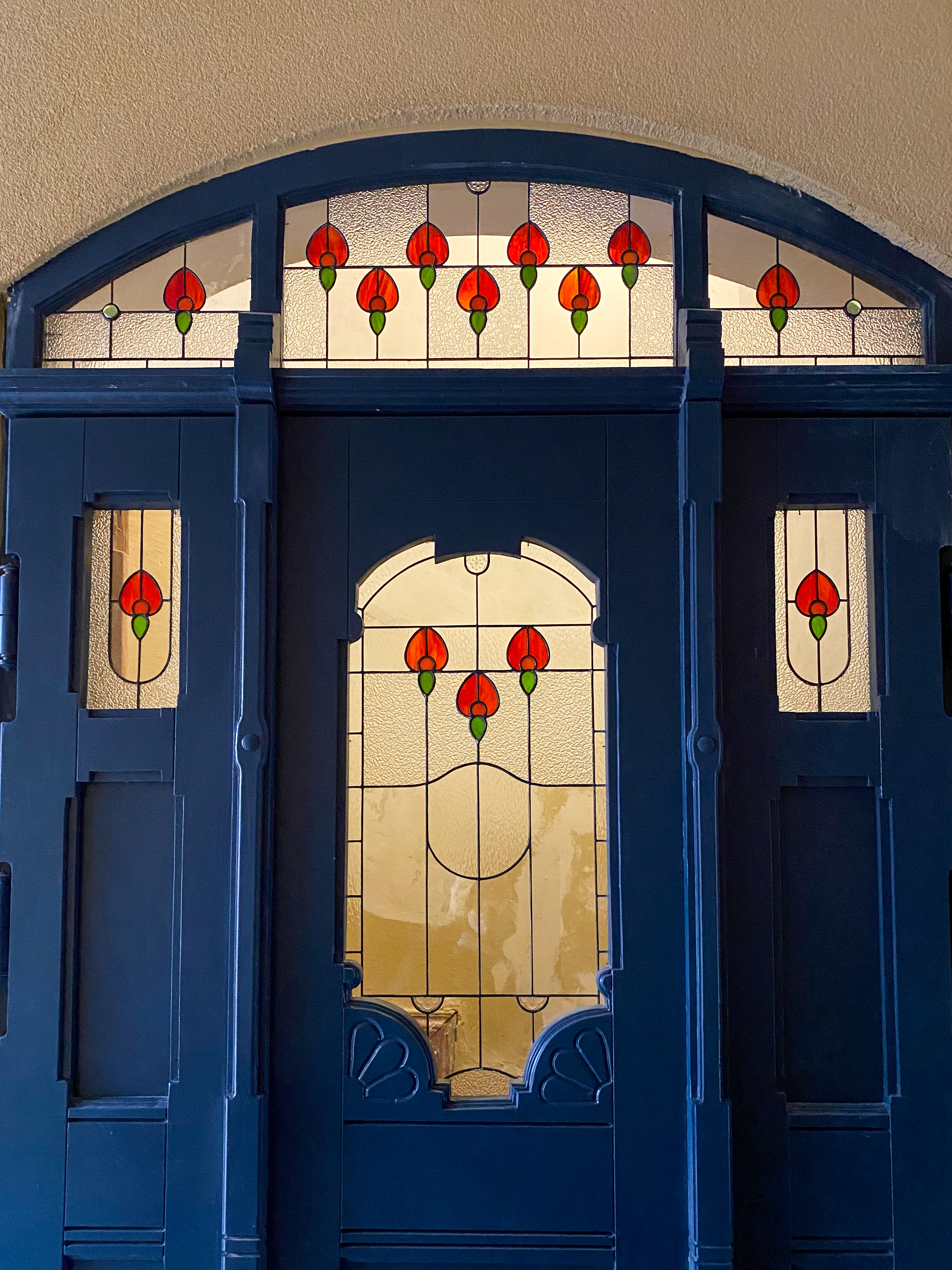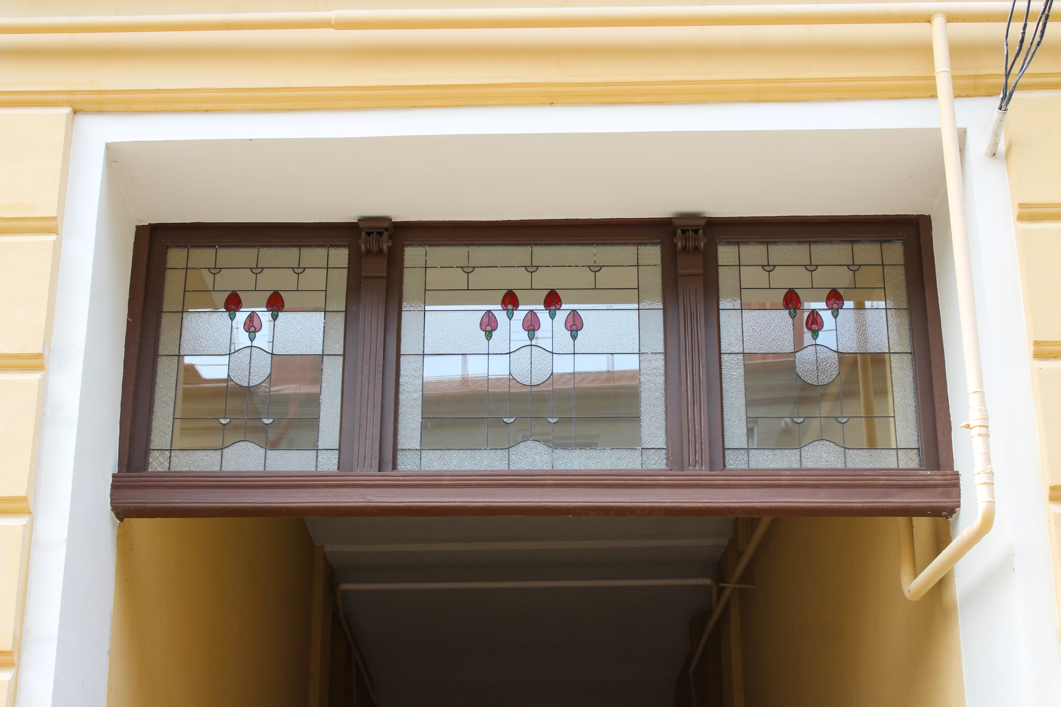 Мы бережно восстановили её, сохранив дух истории, а также добавили немного яркости и красоты — установили витражи с тюльпанами, такими же, что и в двери этого дома.