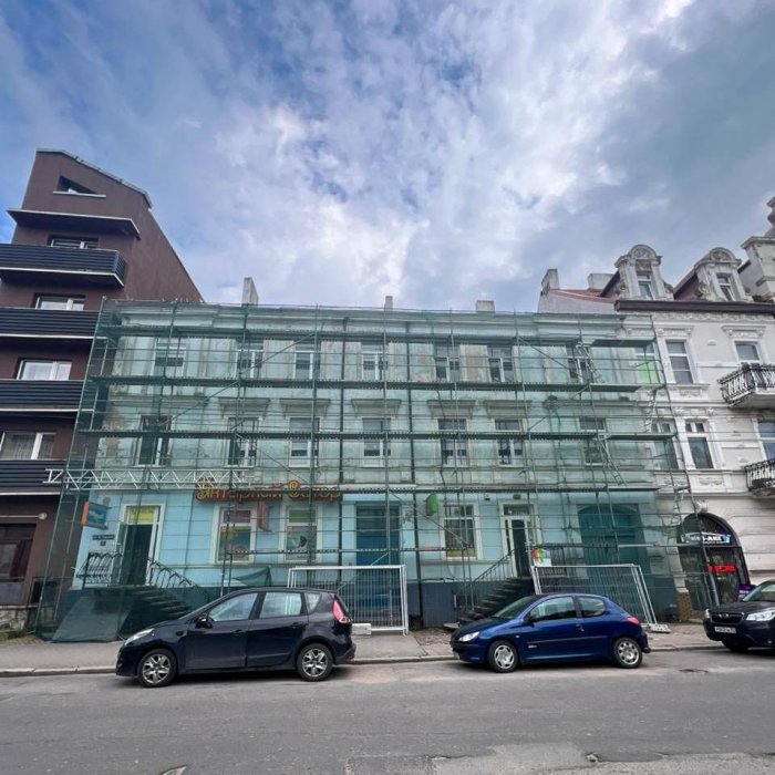 Продолжается капитальный ремонт по адресу Невского 12а. Подрядная организация начала работы по нанесению декоративной штукатурки.